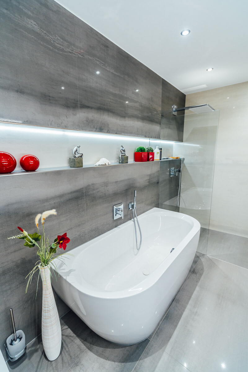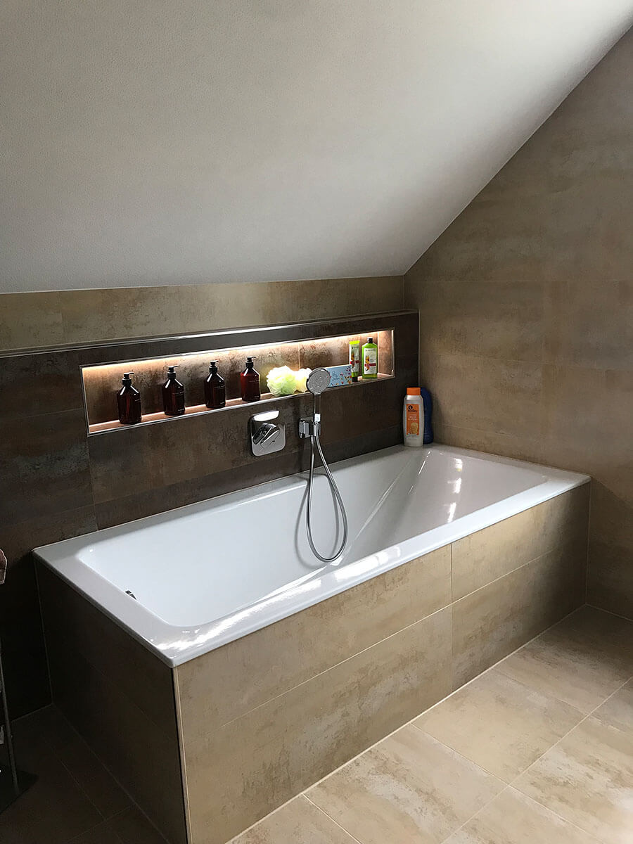 Es ist wichtig, dass moderne Badezimmer ein besonderes Umfeld bieten, um sich wohl zu fühlen. Die fachgerechte Verlegung von Fliesen durch den Meisterbetrieb eines Fliesenlegers trägt zur Funktionalität und Ästhetik bei. Als Fliesenleger empfehlen wir Keramikfliesen und Natursteine. Besonders geeignet sind Wand- und Bodenfliesen im Badezimmer. Wir sind aufgrund unserer Erfahrungen die richtigen Ansprechpartner für die Sanierung Ihres Bades. Gerne erschaffen wir ein schönes, nützliches und funktionales Bad für Sie.