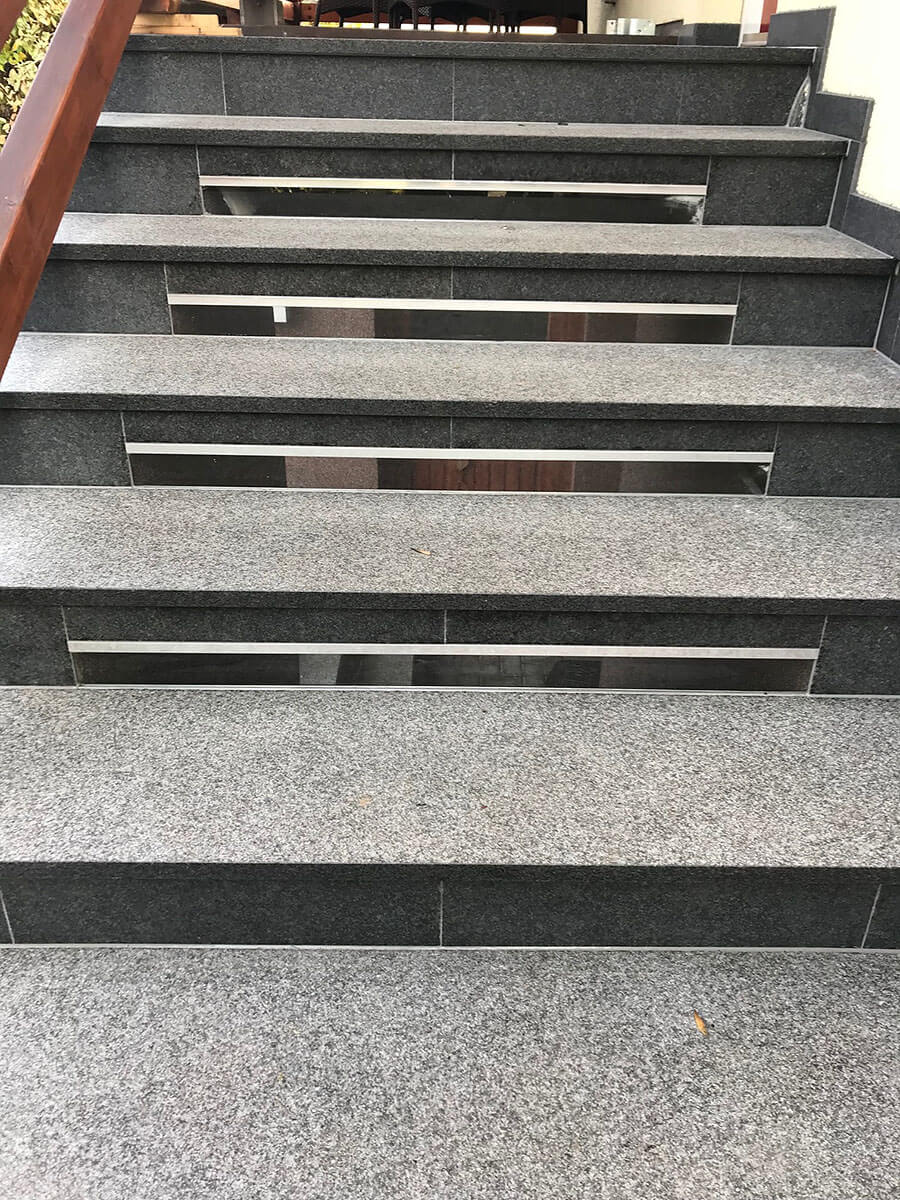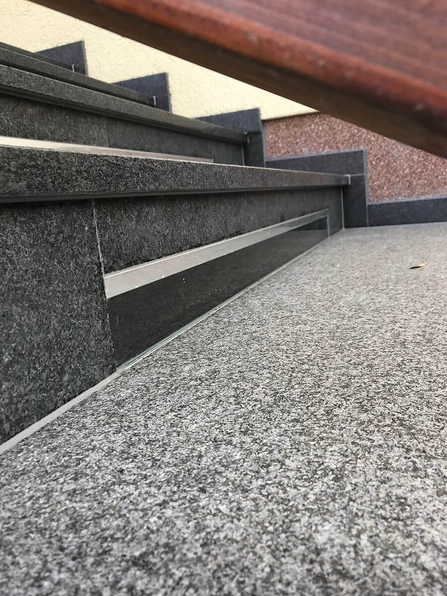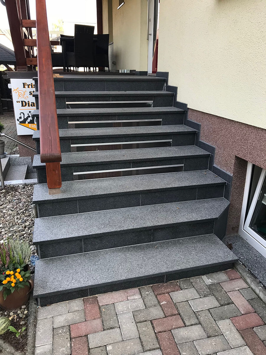 Der Klassiker. Dieses Material hat für den Außenbereich viele Vorteile, es können z.B. Treppenanlagen und Podeste, mit großen Platten, nahezu fugenlos und auch bei jeder Witterung bestens rutschhemmend verlegt werden. Nichts ist manchmal schöner als ein Naturstein, der sich deshalb auch für Fensterbänke, Ablagen oder Mauerabdeckungen besonders empfiehlt. Aber auch Treppenanlagen im Innenbereich werden durch die Plattengröße schön gestaltet und sind zudem sehr reinigungsfreundlich aufgrund der Fugenlosigkeit. Aber auch Waschtisch- und Küchenarbeitsplatten lassen sich mit diesem Material formschön gestalten.